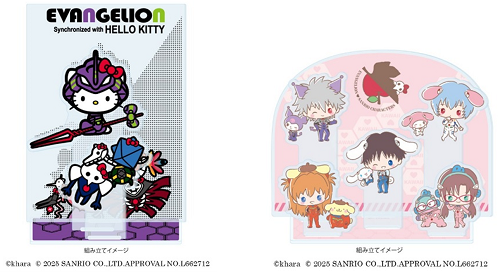 今回新たに書き下ろした「サンリオキャラクターズ」と「キティ」が「エヴァンゲリオン」の装備をまとったデザインのアクリルスタンドプレート。スタイリッシュさと可愛らしさを組み合わせた特徴的なデザイン。