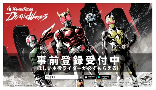 アイアは、TV放映全シリーズの仮面ライダーが登場予定のスマートフォン向けタワーディフェンスゲーム「仮面ライダー DEFENSE WARRIORS」(略称:ライD)の事前登録を、10月1日からApp Store、Google Playで開始した。