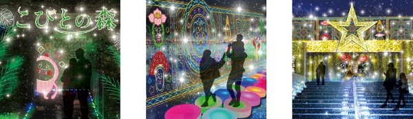 アクロス福岡のステップガーデンでは、「カクレモモジリ」「ホトケアカバネ」など人気のコビトや、福岡県の「固有種コビト」のイルミネーションが登場。まるで“光る「こびとの森」”を冒険するような体験が楽しめる。