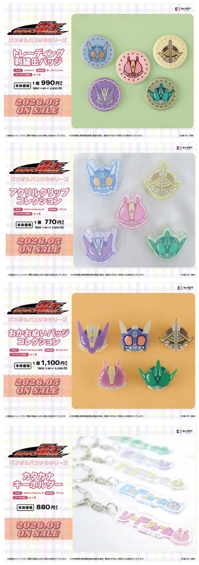 今回発売となる「ギンガムパステルシリーズ」は、かわいらしい色合いをベースにした、各フォームの“おかお”がポイントのオリジナルグッズだ。刺繍缶バッジやポシェット、ハンドタオルなど、まいにちを一緒に過ごせる全7アイテムをラインアップする。