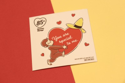 園施設を対象にした素材のダウンロードサービス、「おさるのジョージ わくわくダウンロード広場」には、期間限定で85周年記念アートを使用したオリジナルデザインのポストカードが登場。