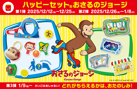 ・ハッピーセット「おさるのジョージ」詳細ページ:https://www.mcdonalds.co.jp/family/happyset/detail01/