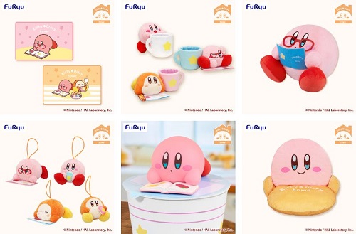 第1弾の「obento(おべんとう)」に続き、今回の第2弾テーマは、「home」。読書タイムを楽しむメガネをかけたカービィのBIGぬいぐるみや、カービィのフェイスデザインがかわいいぬいぐるみチェア、フリューオリジナルシリーズ「ぬーどるストッパーフィギュア」など、カービィたちとおうち時間を楽しめる全6アイテムを展開する。