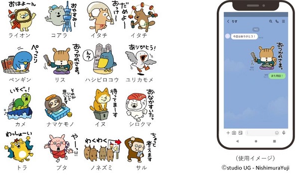 今回、より多くの人に役立つ情報を受け取ってもらえるよう、本コラボスタンプを無料配布。描き下ろしのかわいい動物たちが、東京を象徴する名所や文化を紹介する、日常に寄り添う使いやすいメッセージのスタンプとなっている。