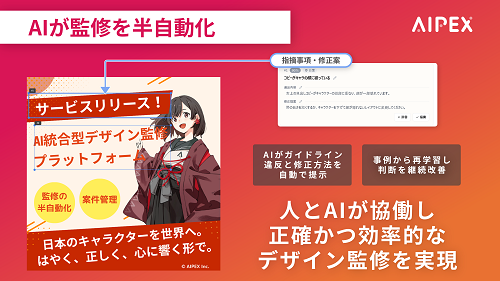 AIPEXは1月27日、AI統合型 デザイン監修プラットフォーム「AIPEX™(アイペックス)」の提供を開始した。