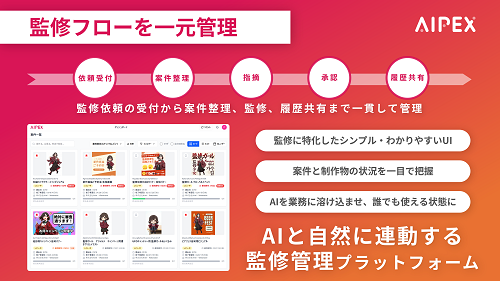 「AIPEX」は、現場の声とともに磨かれていく。監修の効率化や運用整備に課題を感じている企業から問合せフォームより連絡できる。