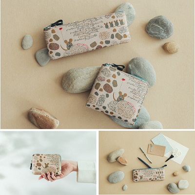 なかまののねずみたちの後ろ姿も可愛くあしらわれた薄型のペンケース。PCや資料でかさばる通勤・通学バッグにもコンパクトに収まる。