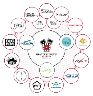グループ所属スタジオ:スタジオコロリド、ジェノスタジオ、スタジオカフカ、BUG FILMS など計18スタジオ