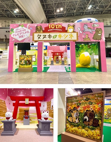 今年のフロンティアワークスブースのメインは、シリーズ累計130万部突破、発売10周年を迎え、10月にテレビアニメ化も決定した人気コミックス『タヌキとキツネ』(著:アタモト)の世界をたっぷりと堪能できる体験型ブースの様子を公開した。