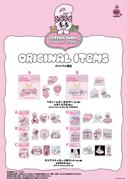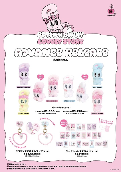 「Esther Bunny Lovely Store」では、限定アイテムや先行販売アイテムなどをはじめ、さまざまな商品を取り揃え、ストア独自のデザインとしてドット柄のリボンやスタッフ風の衣装を身に着けたバニーの店内装飾やアイテムも展開する。